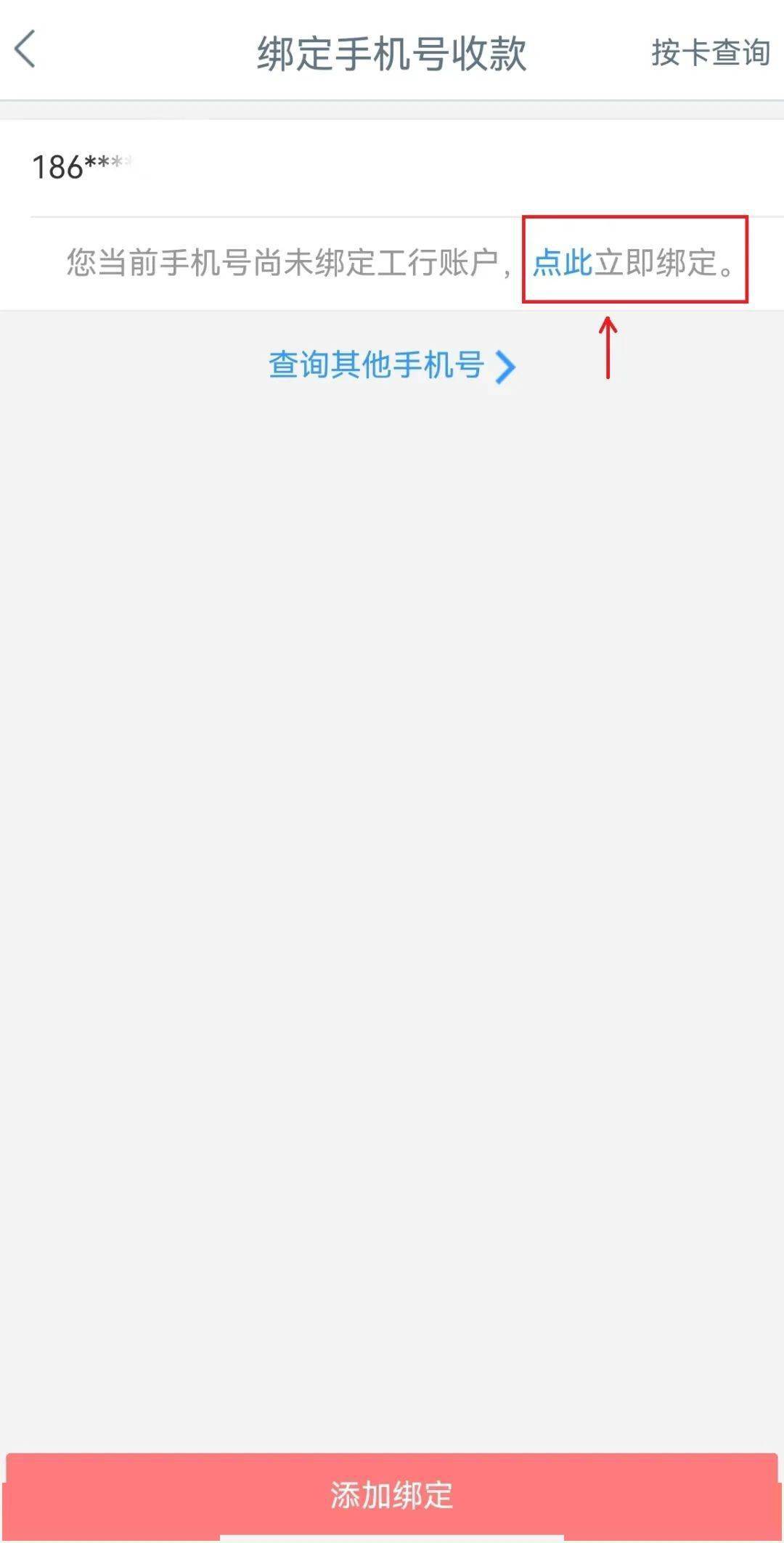 登录工行手机银行首页→转账汇款→更多功能→绑定手机号收款→点此立即绑定(选中您需要绑定的手机号点击此按钮)→选择需要绑定的收款卡(设置为默认收款卡)→选择绑定的卡片后进行人脸识别→短信认证→交易成功(您已成功开通手机号收款业务)。