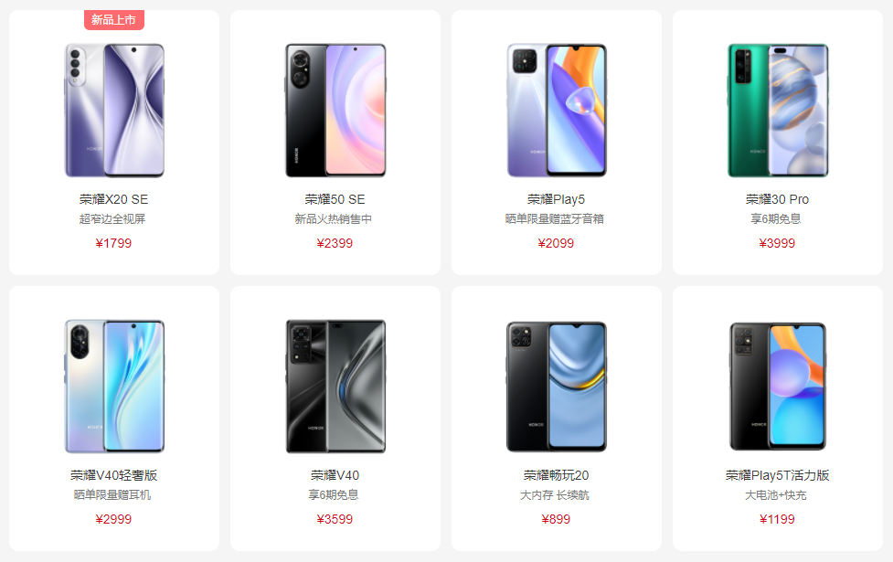 1月份荣耀推出了荣耀V40;3月份推出了荣耀V40轻奢版;4月份推出了荣耀畅玩20;5月份推出了荣耀Play5;6月份推出了荣耀50系列、荣耀Play5T活力版、荣耀X20SE、荣耀Play5T,总计10款新机。